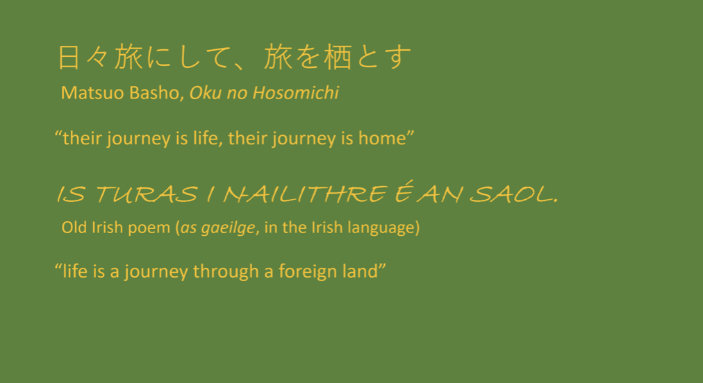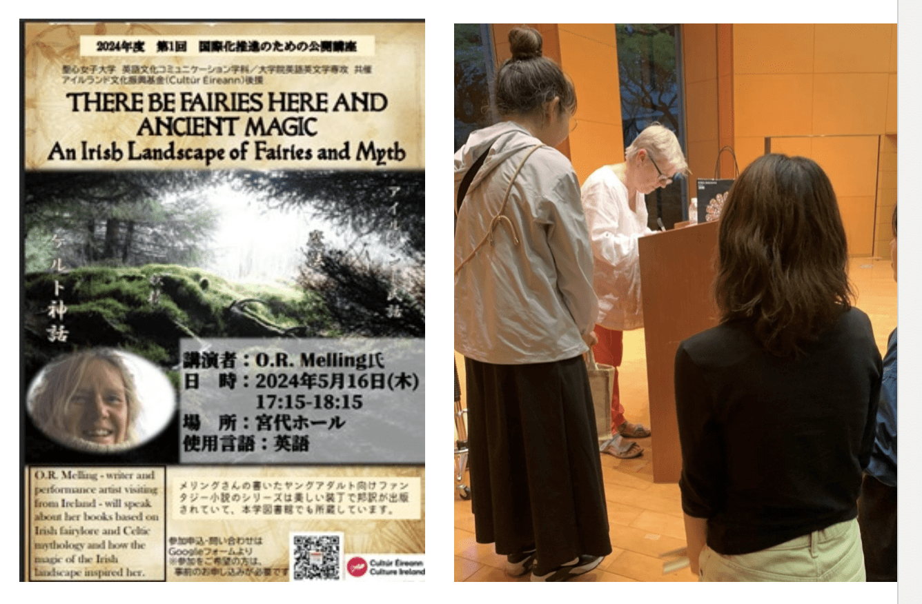My talk included Q & A after a PowerPoint presentation in English with smatterings of Irish and Japanese. Slides displayed Japanese book covers and maps along with photographs s of places and artefacts around Ireland mentioned in the stories.