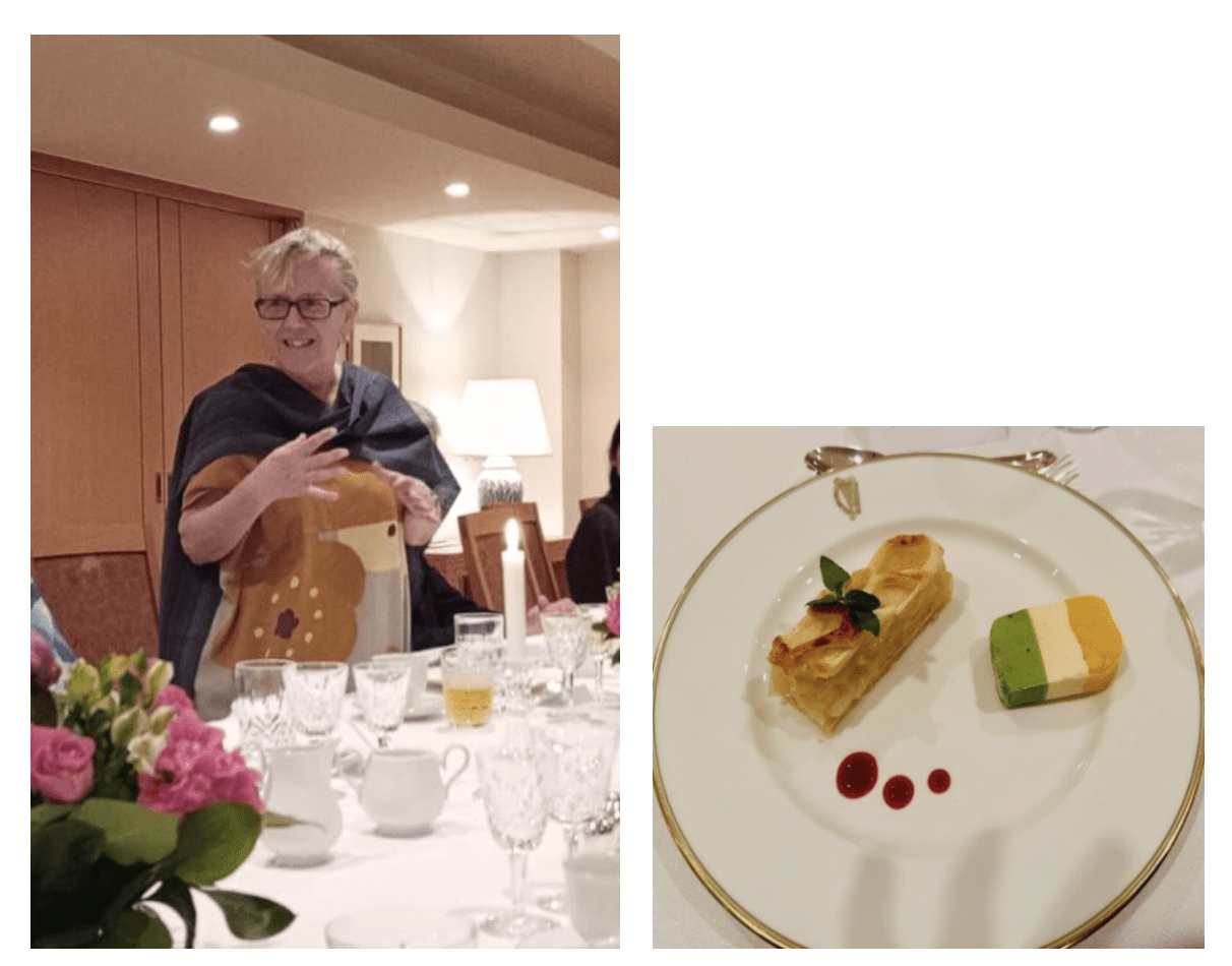 Thank you speech to my hosts in Irish, Japanese & English. After a delicious dinner, a dessert with ice- cream in colours of the Irish flag .