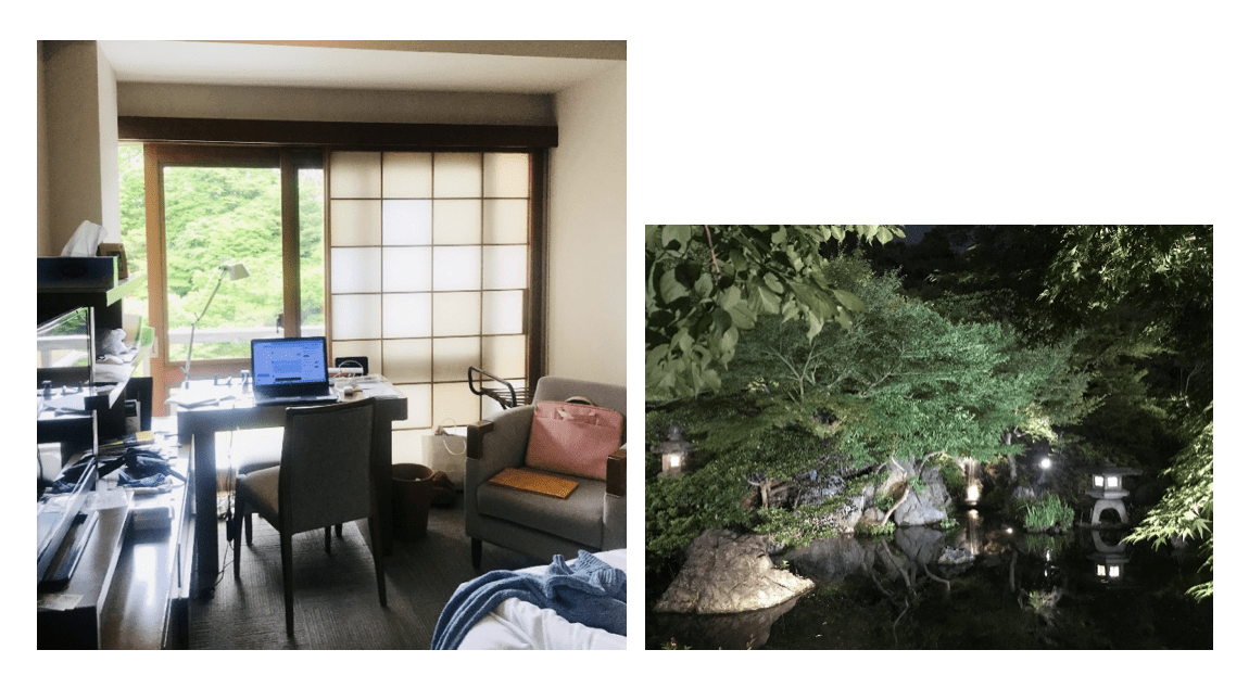 The IHJ offers accommodation to members only but also, if approved, those recommended by a member. (Thank you to my referee who wishes to remain anonymous.) My room overlooking the Zen garden was a wonderful place to work, while the spacious lobby and the patio of the dining room were excellent venues for meeting guests and doing interviews.