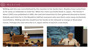 My talk included Q & A after a PowerPoint presentation in English with smatterings of Irish and Japanese. Slides displayed Japanese book covers and maps along with photographs of places and artefacts around Ireland mentioned in the stories.