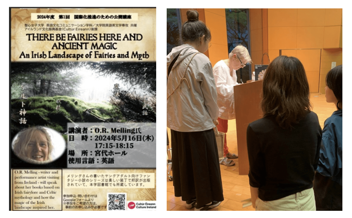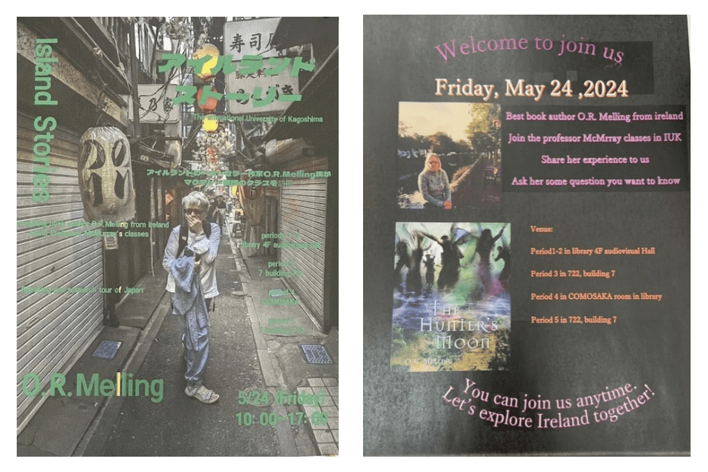 My talk included Q & A after a PowerPoint presentation in English with smatterings of Irish and Japanese. Slides displayed Japanese book covers and maps along with photographs of places and artefacts around Ireland mentioned in the stories.