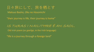 My talk included Q & A after a PowerPoint presentation in English with smatterings of Irish and Japanese. Slides displayed Japanese book covers and maps along with photographs of places and artefacts around Ireland mentioned in the stories.